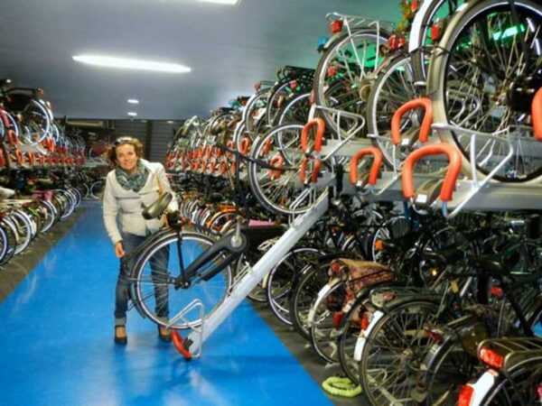 デンマークやドイツなどのヨーロッパの国々では、持続的な成長及び持続可能な社会を実現する政策として、政府が率先して自転車利用を推進してきた。 ここオランダでも、自転車は買い物や通勤・通学など短距離移動に主に用いられ、レジャーでもよく使われている。自転車人気が高い理由については、色々な要因があるが、その一つがインフラ整備であろう。オランダ政府の奨励策を受けて、都市部から地方まで全土に自転車専用道路や専用レーンが張り巡らされている。また、中長距離移動の場合は、地下鉄や路面電車、電車等への持ち込みも可能で、公共交通との連携が見事に取れている。日本でも通勤等で駅前等に駐輪をすることが多いと思うが、オランダでは最近、専用の自転車駐輪施設の建設が主要都市で進んでいる。ここユトレヒト市でも、中央駅西側に今年5月オープンした駐輪場は24時間営業で、4階建てとなっており、合計4200台の自転車が収容可能。OVカードと呼ばれる、JRのスイカパスみたいなICカードを使うことが前提になっているが、最初の24時間は無料というのが心強い(写真参照)。オランダは自転車盗難が多いが、こういうところに預けることによって盗難の心配をしなくていいのも嬉しい。