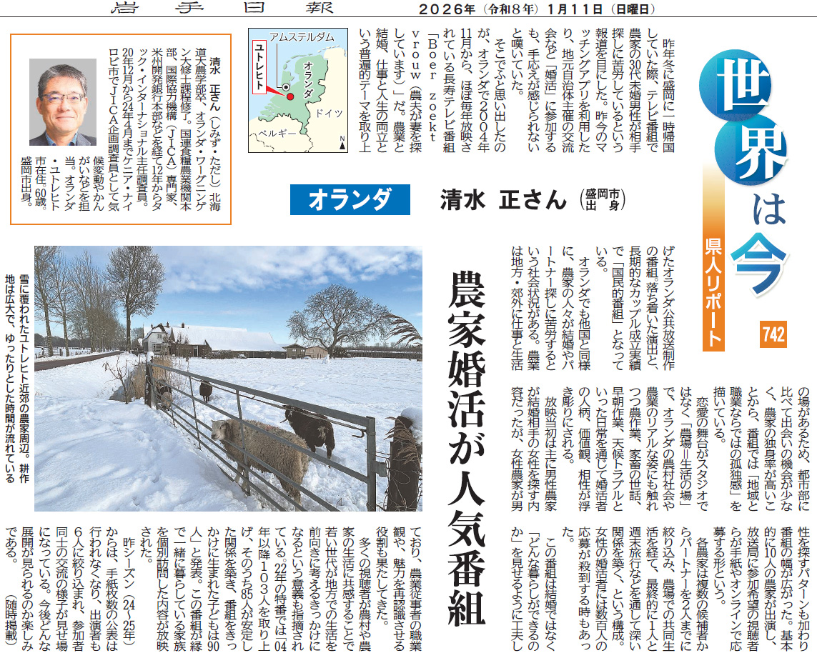 「農家婚活が人気番組」岩手日報No.742号